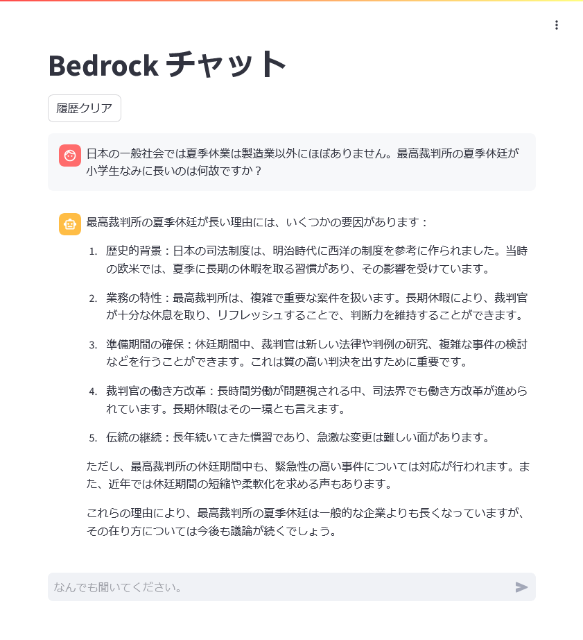 ※AWS Bedrock Cluadeの回答 — 質問の意図に合わせて回答しているのがすばらしい。