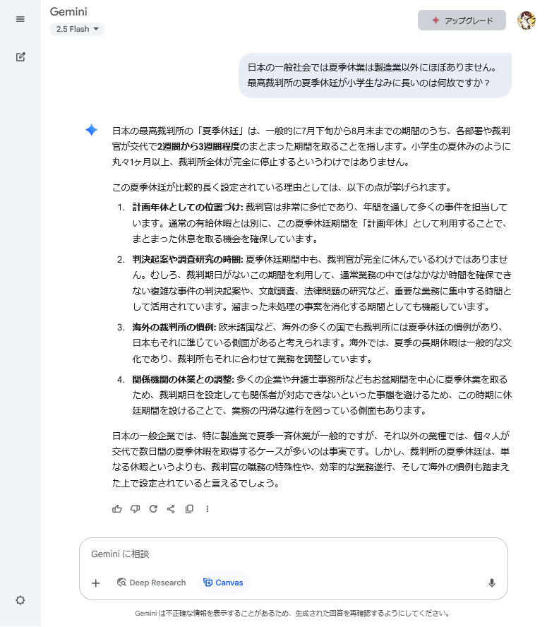 7月下旬から8月の開廷期日がないのはどうしてかAIに聞いてみた。