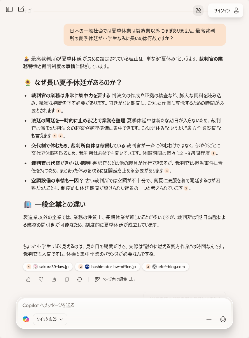 ※Microsot Copilotの回答 — 回答の引用元が表示されるのはすばらしい。